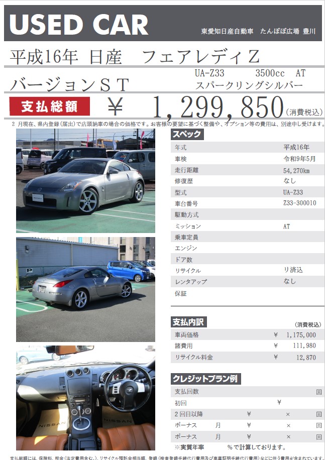 フェアレディZ バージョンST 平成16年 スパークリングシルバー