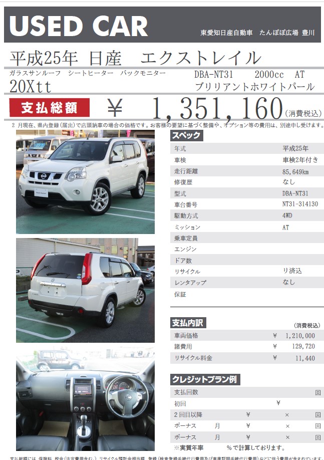 エクストレイル 20Xtt ブリリアントホワイトパール 平成25年