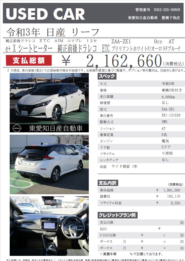 リーフ e+ X ブリリアントホワイトP/オーロラFブルーP 令和3年