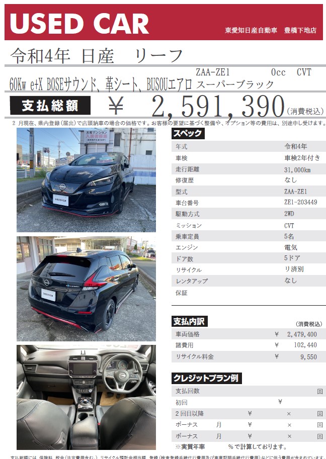 リーフ 60Kw e+X スーパーブラック 令和4年