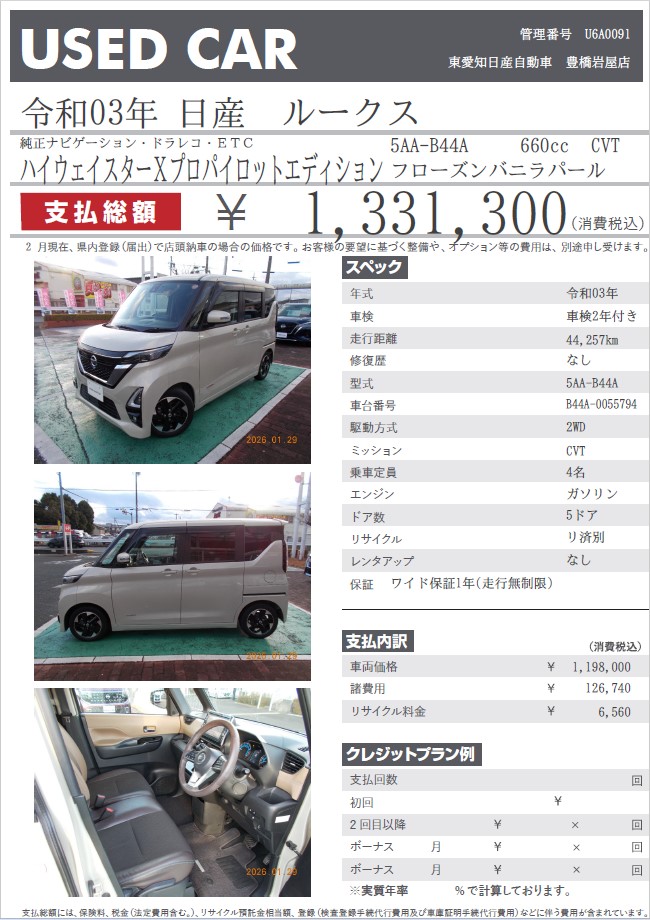 ルークス ハイウェイスターXプロパイロットエディション フローズンバニラパール 令和3年