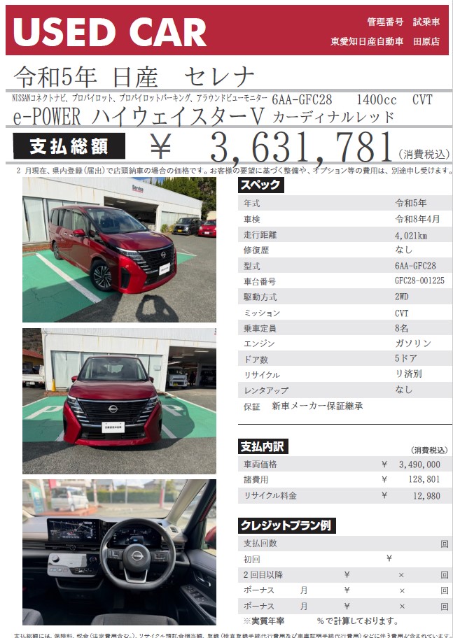 セレナ e-POWER ハイウェイスターV カーディナルレッド 令和5年