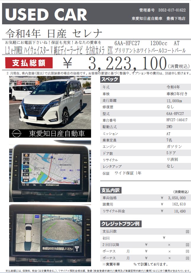 セレナ e-POWER ハイウェイスター V ブリリアントホワイトパール 令和4年