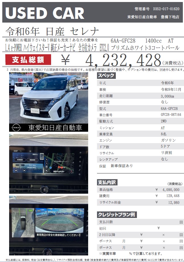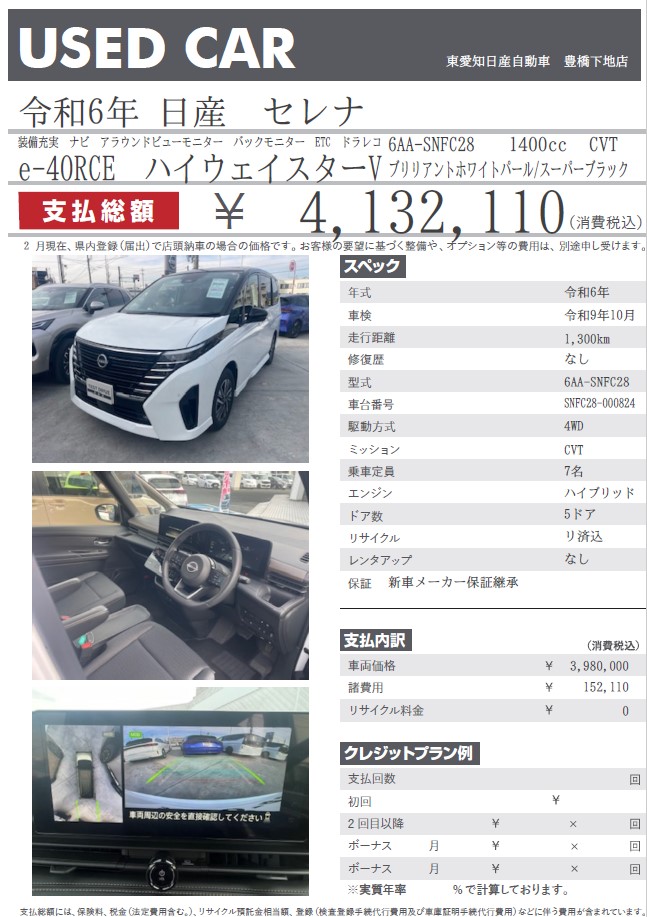 セレナ e-POWER プリズムホワイト 令和6年