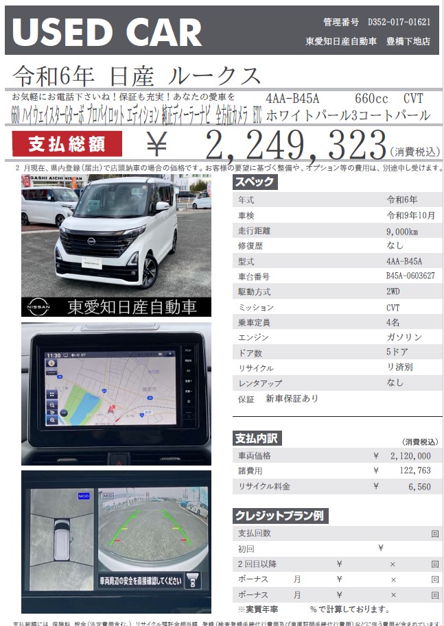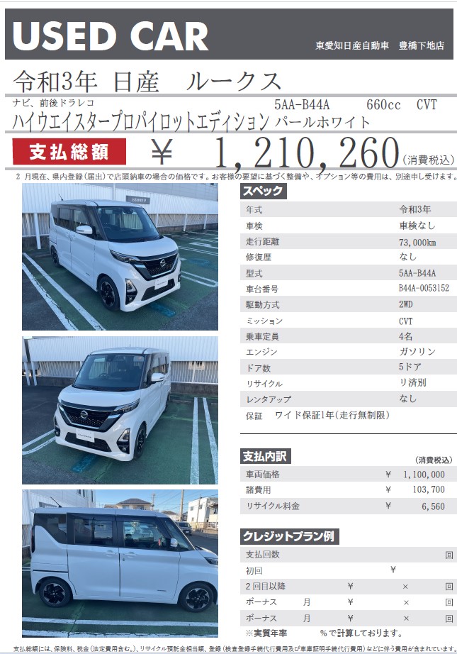ルークス ハイウェイスターXプロパイロットエディション パールホワイト 令和3年