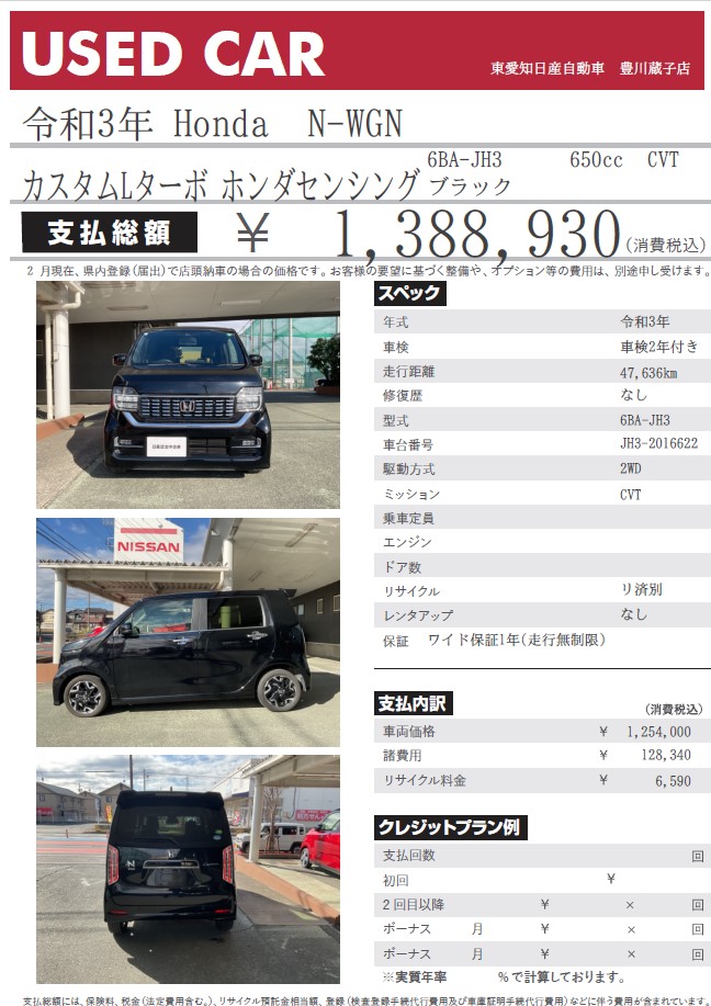 N-WGN カスタムLターボ ホンダセンシング ブラック 令和3年