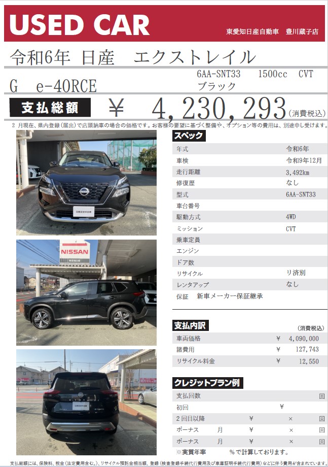 エクストレイル G e-4ORCE ブラック 令和6年