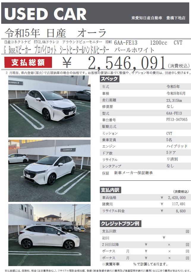 オーラ G パールホワイト 令和5年