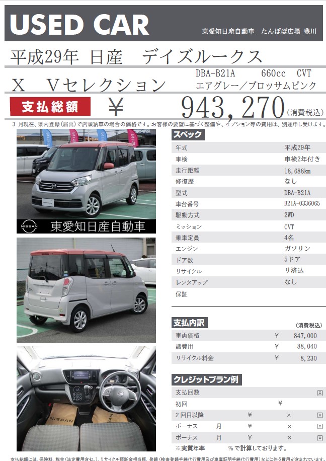 デイズルークス X Vセレクション エアグレー/ブロッサムピンク 平成29年