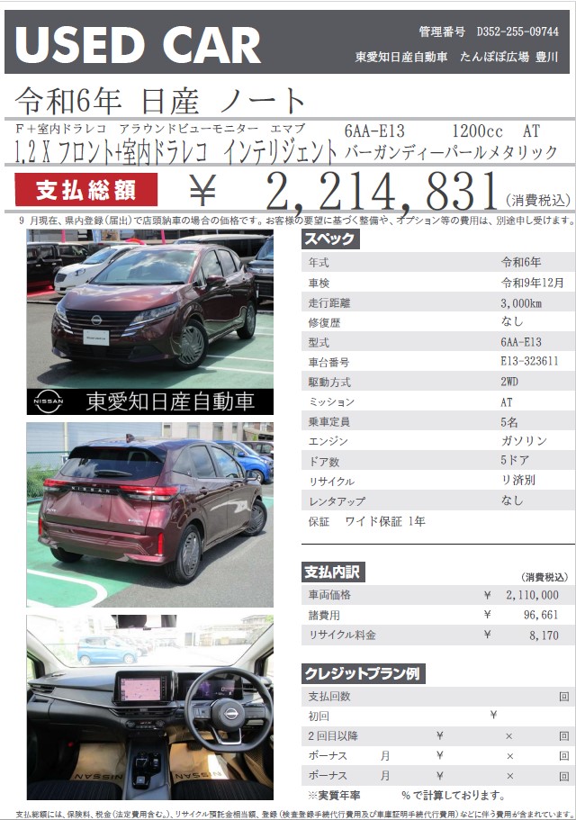 フロント+360度型室内ドラレコがついているので、心強いですね。
