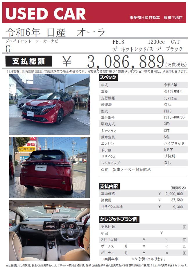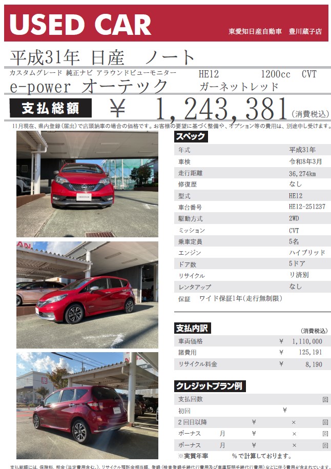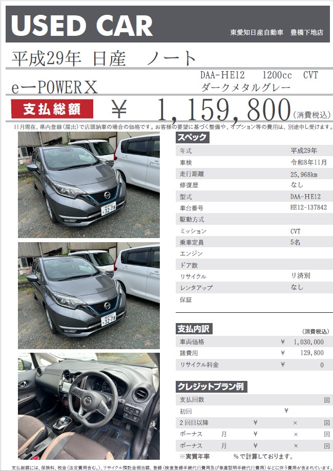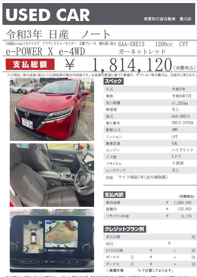 前モデルですが、低走行距離、傷なし、ナビ付のēーpowerです。