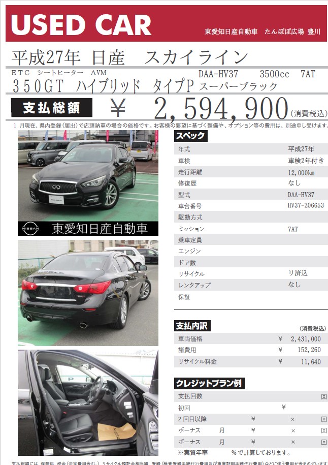スカイライン 350GT ハイブリッド タイプP スーパーブラック 平成27年