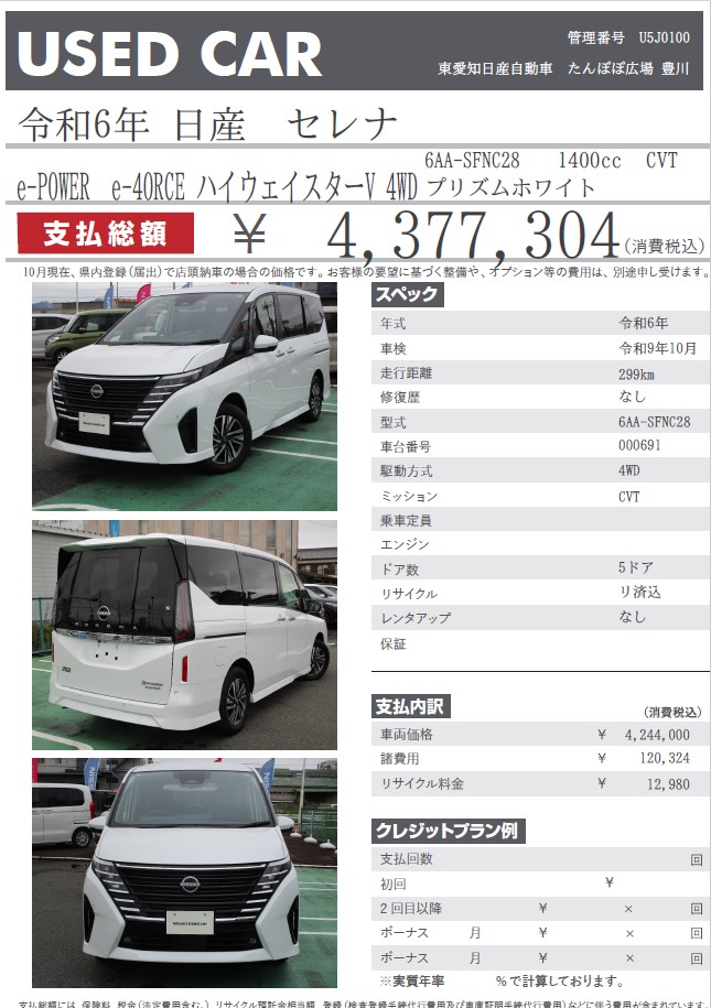 セレナ e‐POWER e‐4ORCE プリズムホワイト 令和6年