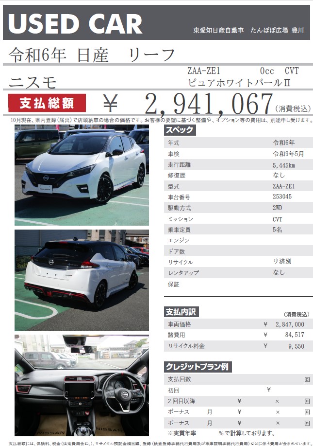 リーフ ニスモ ピュアホワイトパールツートン 令和6年