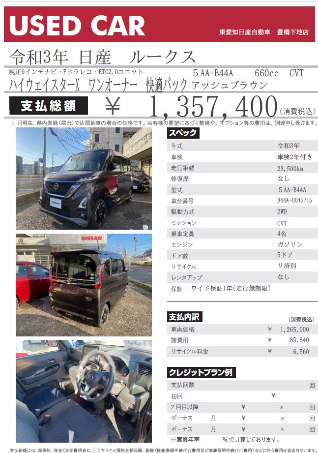 ルークス ハイウェイスターX アッシュブラウン 令和3年