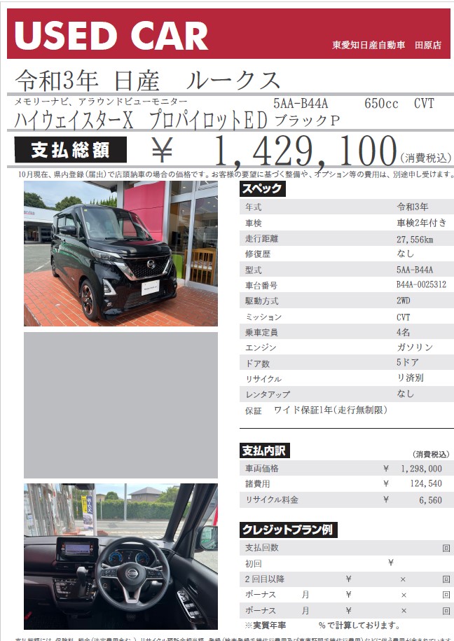 ルークス ハイウェイスターX プロパイロットED ブラック 令和3年