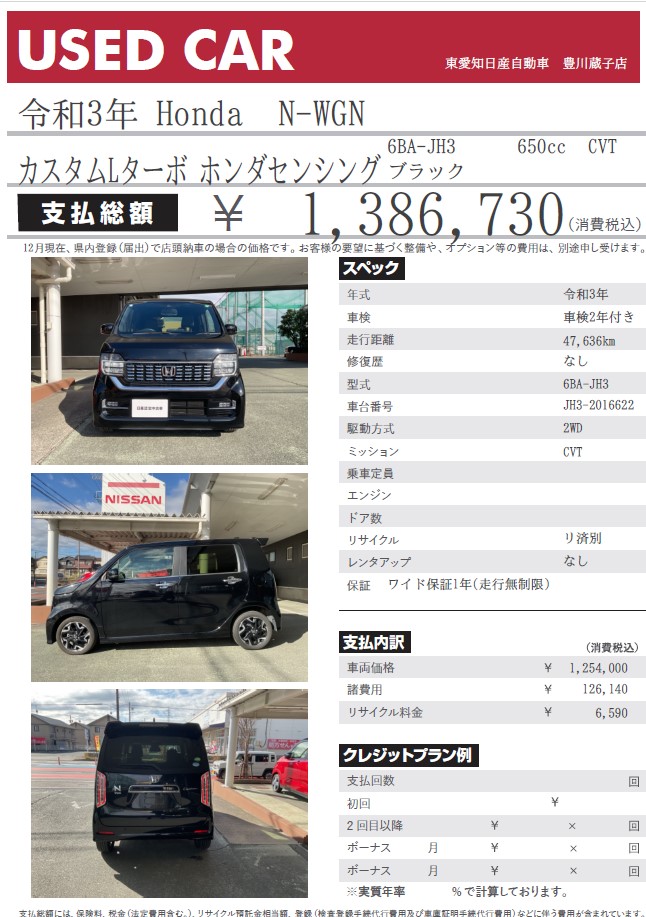 N-WGN カスタムLターボ ブラック 令和3年