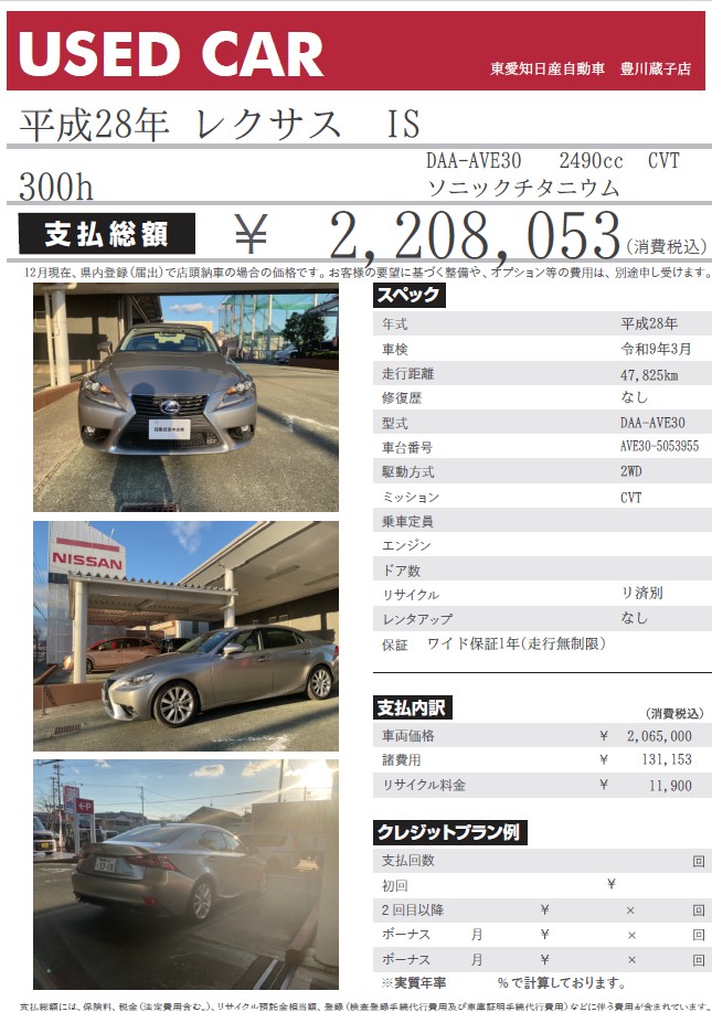レクサス IS 300h ソニックチタニウム 平成28年