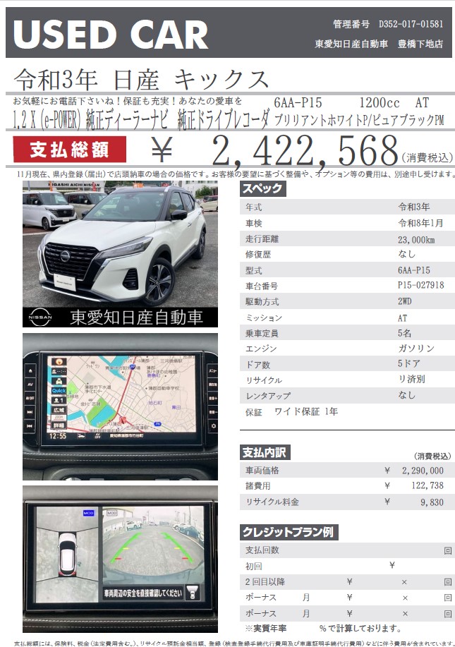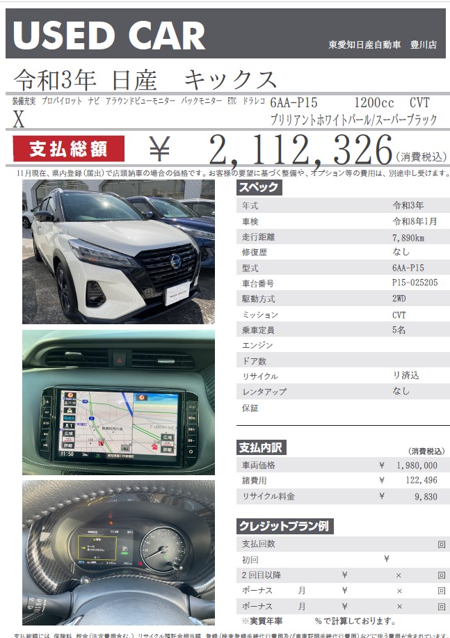 キックス X ブリリアントホワイトパール/スーパーブラック 令和3年