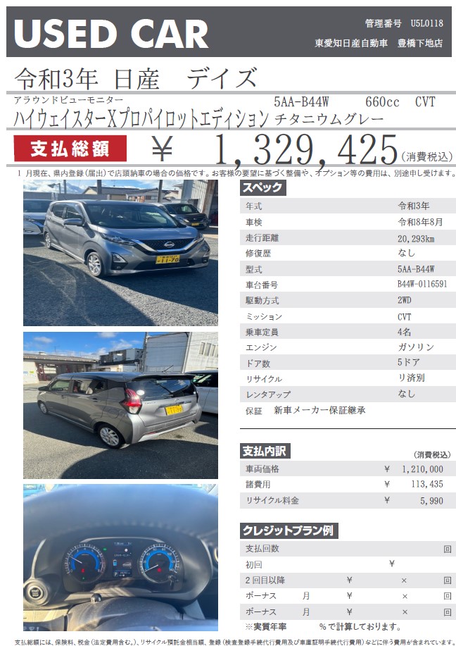 デイズ ハイウェイスターX プロパイロットエディション チタニウムグレー 令和3年