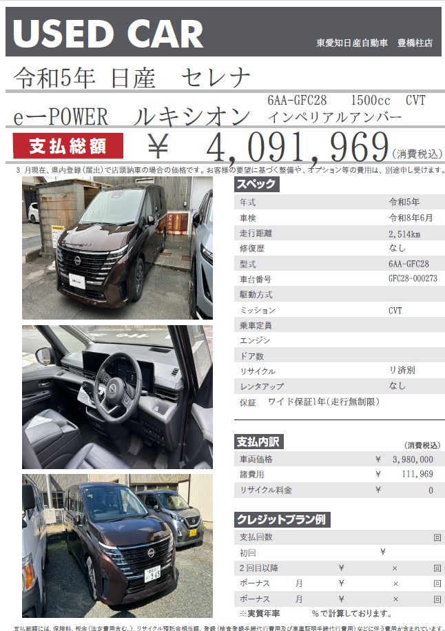 セレナ e-POWER ルキシオン インペリアルアンバー 令和5年