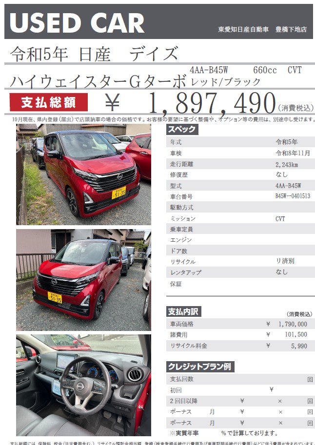 デイズ ハイウェイスターGターボ レッド/ブラック 令和5年