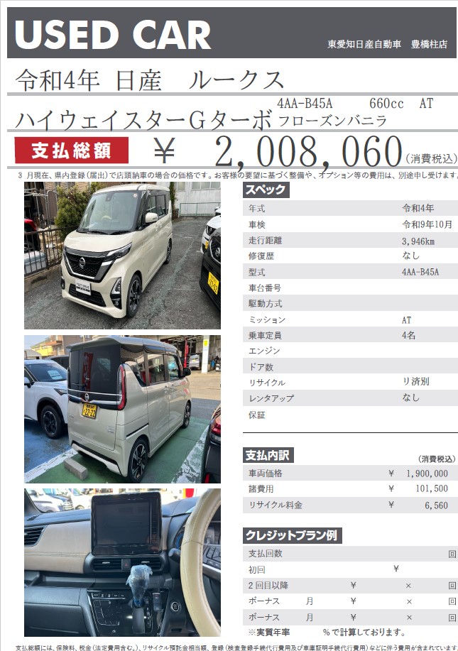ルークス ハイウェイスターGターボ フローズンバニラ 令和4年