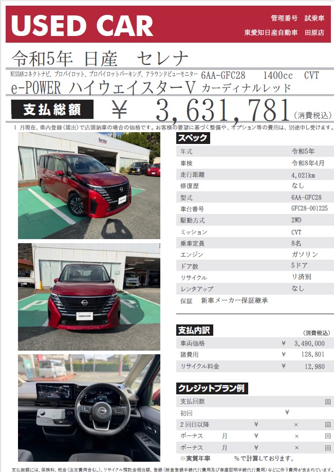 他地域ディーラーの試乗車だったクルマを仕入れました