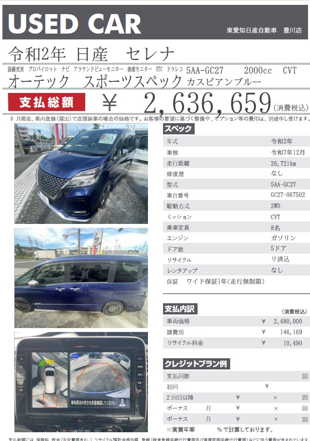 セレナ オーテックスポーツパッケージ カスピアンブルー 令和2年