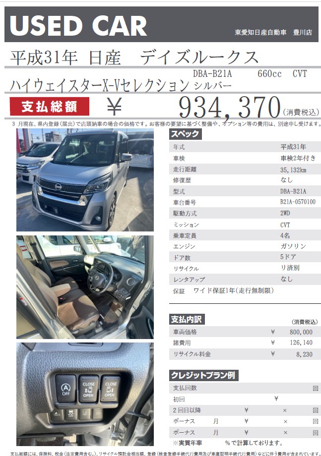 デイズルークス ハイウェイスターX Vセレクション シルバー 平成31年 豊川店