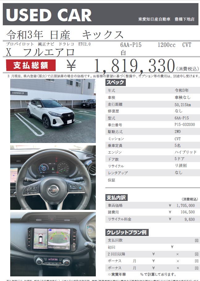 ・日産コネクトナビ、プロパイロット、プロパイロットパーキング、本革シート装備